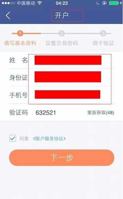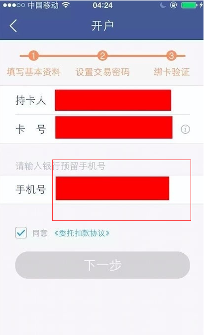 7、以上便完成开户工作。然后确保手机号码的准确性,方便接收日后银行信息通知。