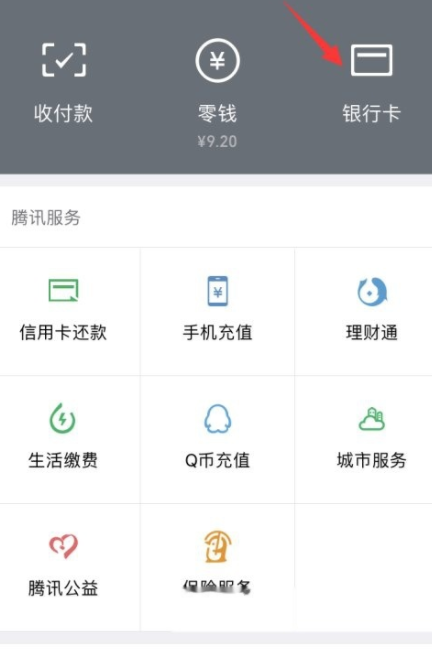 3、来到钱包的管理窗口后,找到银行卡进入。