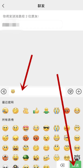 5、在编辑信息栏输入群发信息的内容,点击【发送】即可。