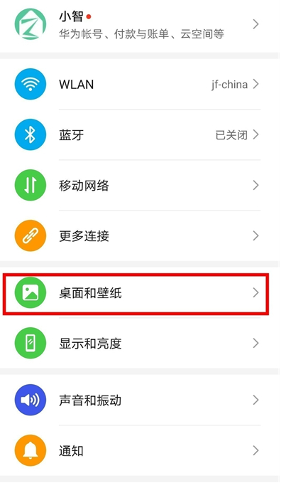 1、打开手机设置菜单中的【桌面和壁纸】。