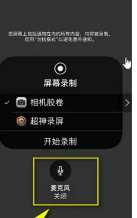 3、进入屏幕录制界面后,点击打开下面的麦克风,就可以录音了。