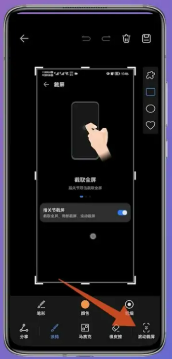 4、指关节敲击打开以后,点击下面的小图,然后选择右下角的滚动截屏。