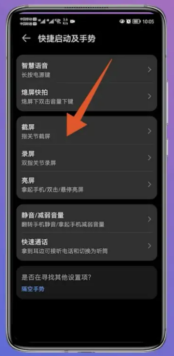 3、点击选择截屏,然后点击打开里面指关节截屏打开。