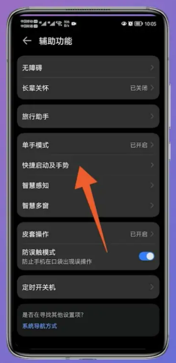 2、点击打开以后发现快捷手势一栏,静静的等待页面的跳转。
