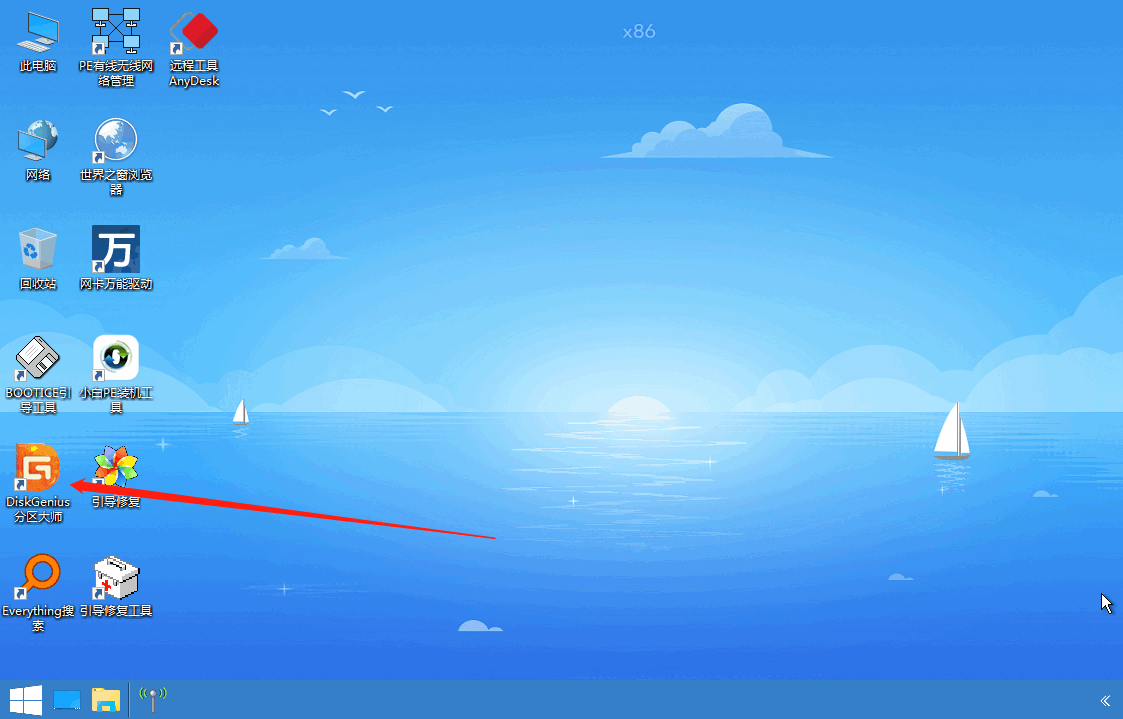 1、我们用U盘系统盘进入pe系统里,打开分区工具。