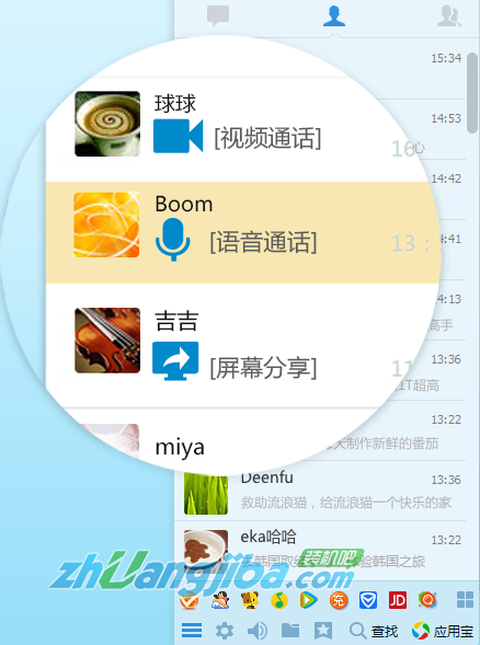 主板和聊天窗口新增视频语音、屏幕分享标识,通话状态一目了然。