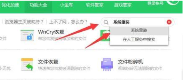 2、搜索重装系统。