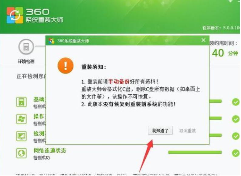 5、建议提前备份数据,备份完后点击我知道了。