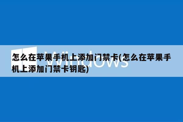 苹果怎么设置门禁卡到手机上