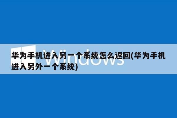 华为手机可以设置两个系统,一个主系统,一个副系统,两个系统互不干扰,互不冲突,但是要进入另外一个系统的时候,需要手动切换,下面教大家:华为双系统怎么切换?