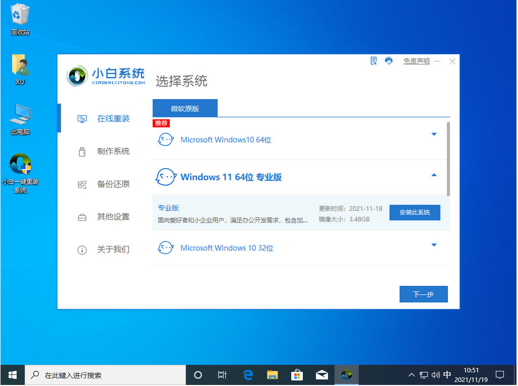 一、重装系统第一步就是要把下载好的小白一键重装系统打开选择Windows11系统。