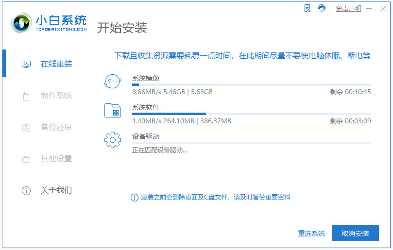 5、到时小白装机工具会自动打开并安装win111系统,我们无需操作。