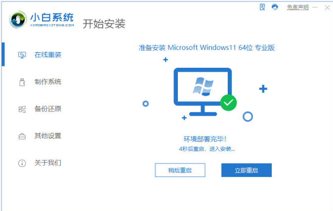 1、下载安装小白一键重装系统工具并打开,在线重装栏目选中win11系统,点击安装此系统即可。