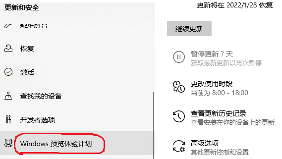 3、然后点击左侧的“windows预览体验计划”选项。