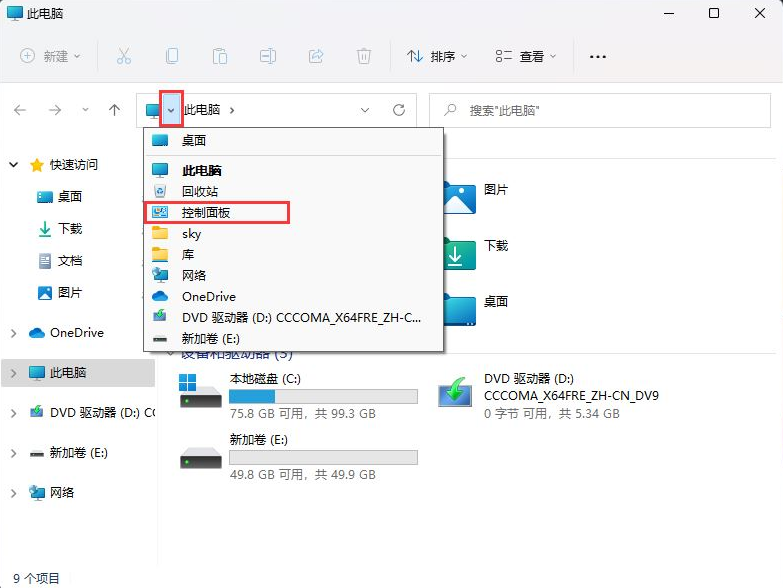 方法五:文件资源管理器中打开控制面板