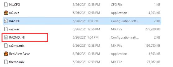 4、来到游戏的安装目录,双击打开“RA2MD.INI”配置文件。