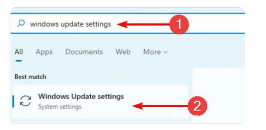 1、win11摄像头打开黑屏怎么办,在搜索框中搜索并打开【windows update settings】。