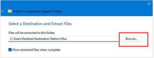 3、然后在其中点击浏览就可以选择需要解压到的位置。