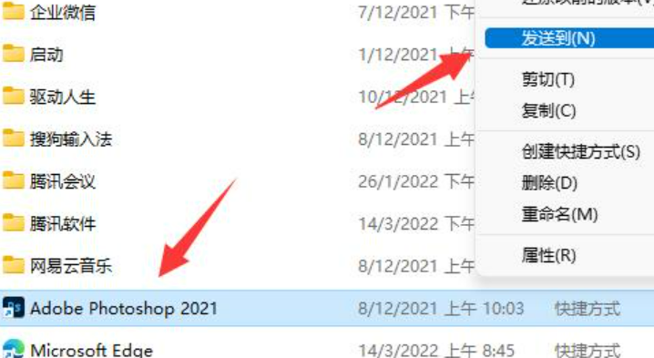 4、打开后,找到该软件,右键它将鼠标放到“发送到”位置。