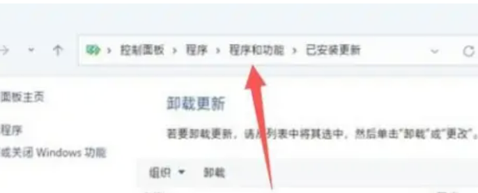 4、点击上方地址栏的“程序和功能”就能进入了。