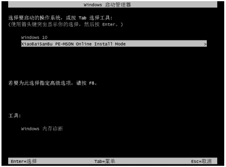 4、电脑进入启动项选择界面,选择小白PE系统,回车进入。