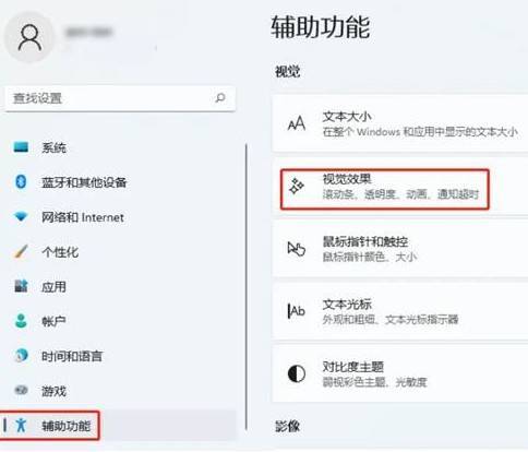 打开电脑的辅助功能,右击找到“视觉效果”。