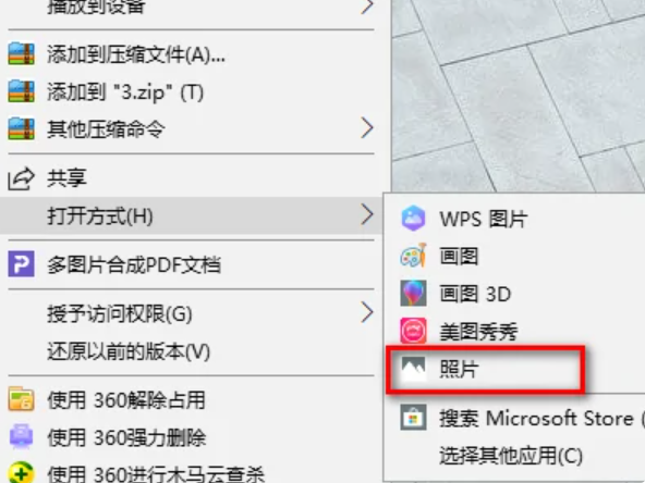 3、选中这张照片之后,右键单击鼠标,在弹出的窗口里面选择打开方式。