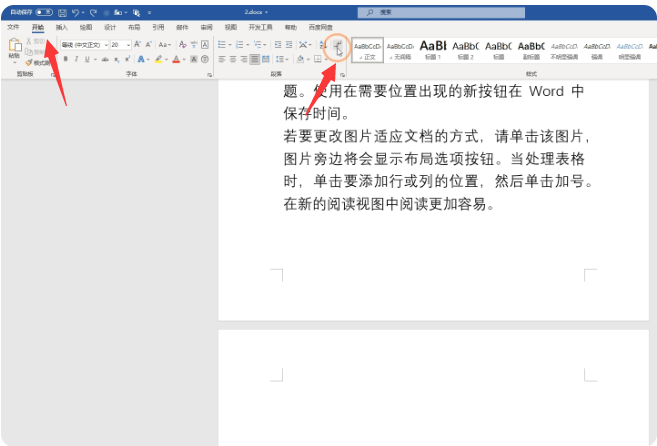 1、打开word文档,点击【开始】-【段落】,再点击【显示标记】,它是由两个箭头组成的按钮。这样的话就能看到文档中的所有符号,当然也包括分隔符了,我们只需要将分隔符删除掉,这样空白页就会消失。