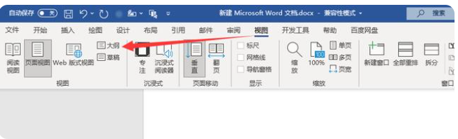2、如果Word文档没有【显示标记】,也可以点击【视图】将视图切换为【大纲】在大纲视图中也是可以看到分隔符号的。