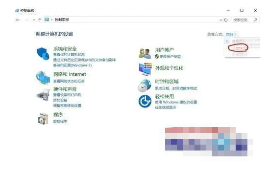 3、打开控制面板界面之后,找到右边的显示方式,点击按照大图标显示即可。