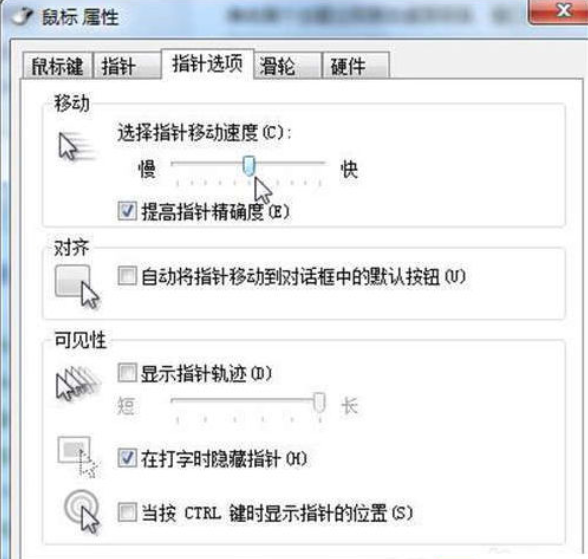 4、点击切换之指针选项,如图,点击拖动图示的小按钮,改变指针的灵敏度
