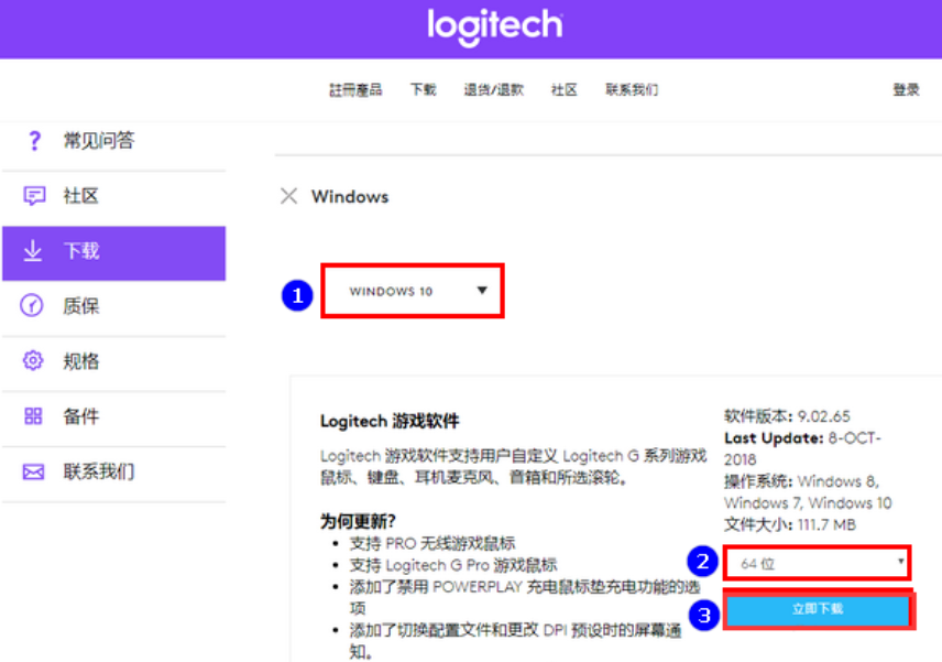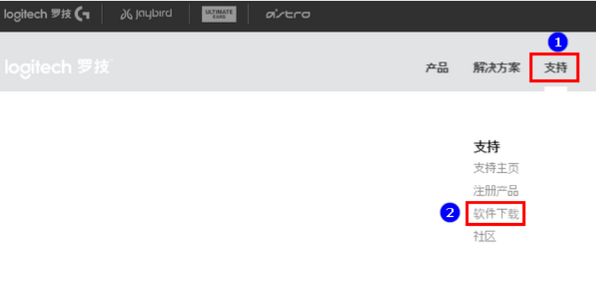 1、进入罗技官网,点击上方菜单的支持,点击支持下的软件下载。