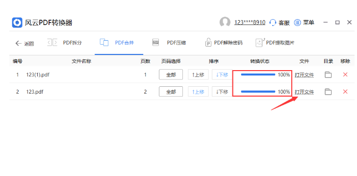 4、耐心等待进度条完成后,点击【打开文件】就能浏览合并完成的PDF文件。