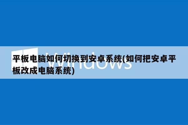平板电脑如何切换到安卓系统(如何把安卓平板改成电脑系统)
