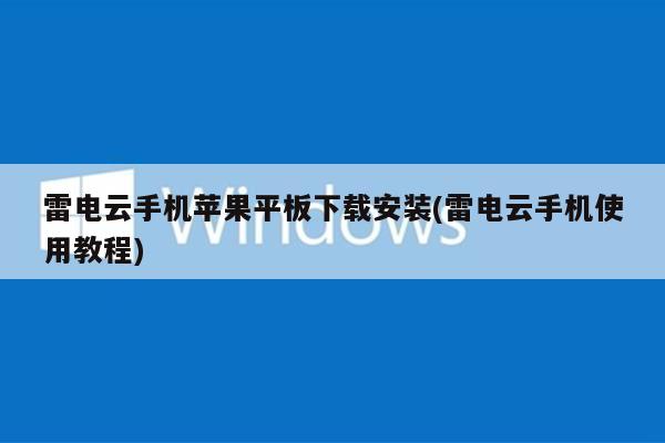 雷电云手机苹果平板下载安装(雷电云手机使用教程)