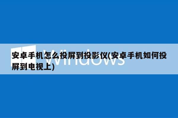 安卓手机怎么投屏到投影仪(安卓手机如何投屏到电视上)