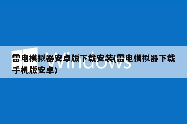 雷电模拟器安卓版下载安装(雷电模拟器下载手机版安卓)