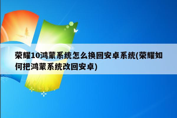 ; 升级鸿蒙后可以通过华为手机助手换回安卓系统,本视频通过华为手机和win10系统来演示,具体的操作步骤如下: