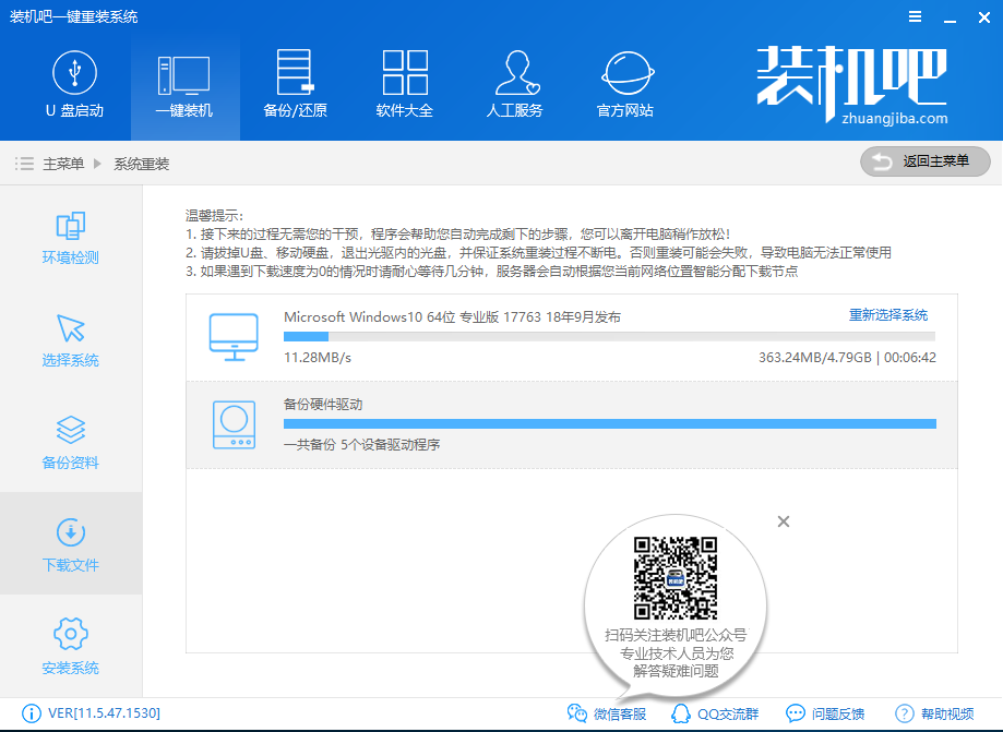 6.之后软件开始自动下载win10系统并备份需要备份的文件,请耐心等待完成。