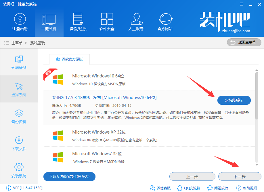 1.这里以装机吧一键重装系统软件为例说明,打开装机吧一键重装系统官网,下载运行装机吧一键重装系统软件,进入下一步。