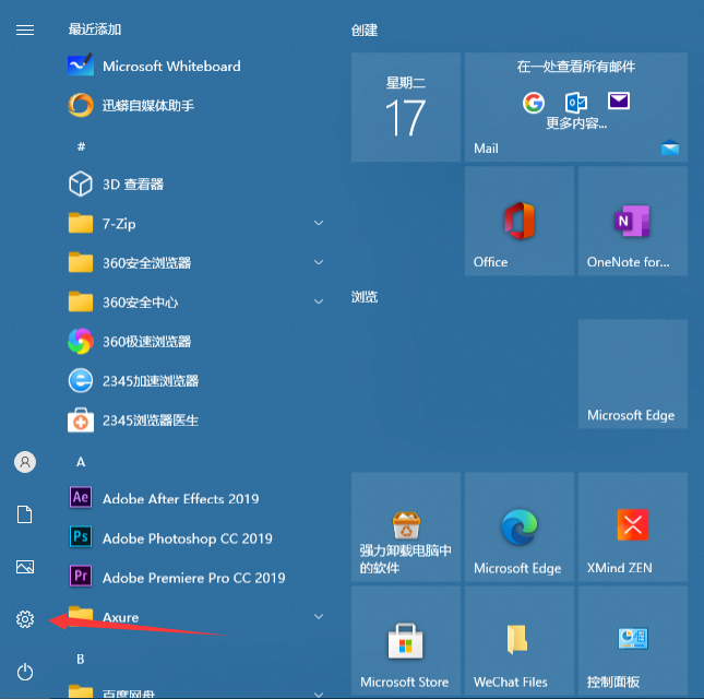 1、打开开始菜单或者直接按Win键,然后点击设置进入到设置界面。