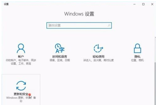 1.首先我们按【win】+【i】进入到系统设置的页面,点击进入【更新和安全】。