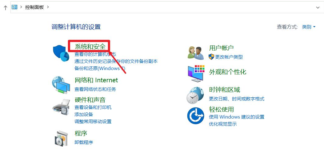 1.在电脑中,打开控制面板,进入系统和安全选项。