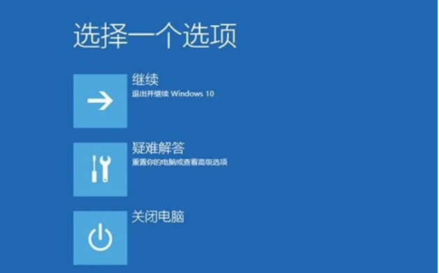 1、重启电脑,看到开机logo时长按电源键强制关机,开机,反复三次。此时会出现如下图这个界面。我们选择点击疑难解答进入下一步。