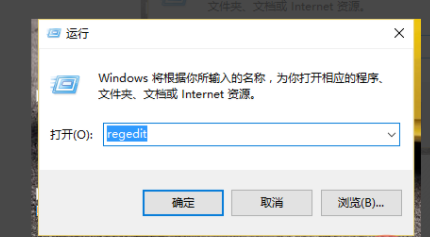 2、在运行输框中输入”regedit“,点击确定。