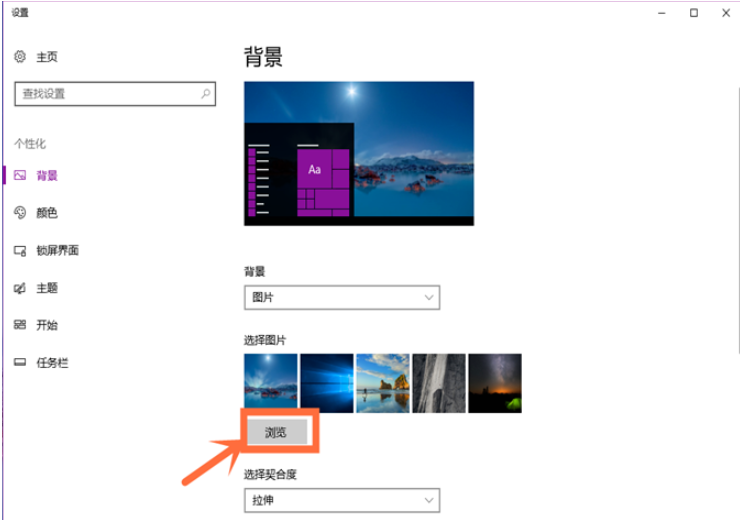 4、如果不想使用系统自带的壁纸,那就点击下方的“浏览”按钮。