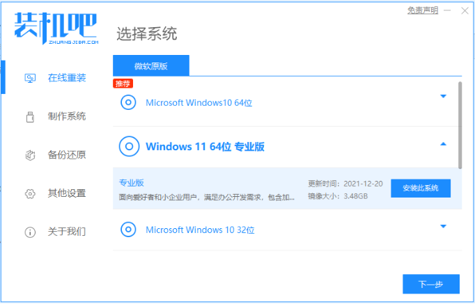 方法二:借助装机吧工具在线安装win11
