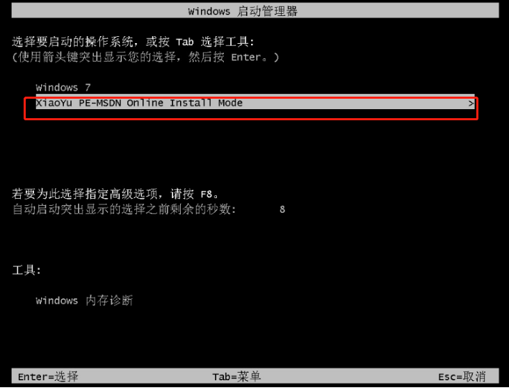 4.在开机的界面选择xiaoyu-pe系统;