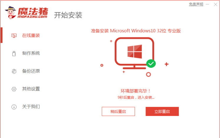 步骤四:接着等待系统安装部署环境完毕之后后,点击立即重启即可。