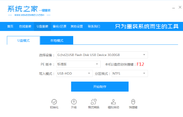 1、惠普笔记本怎么重装系统win10,下载安装系统之家一键重装系统工具,然后插入U 盘打开软件开始制作启动 U 盘。